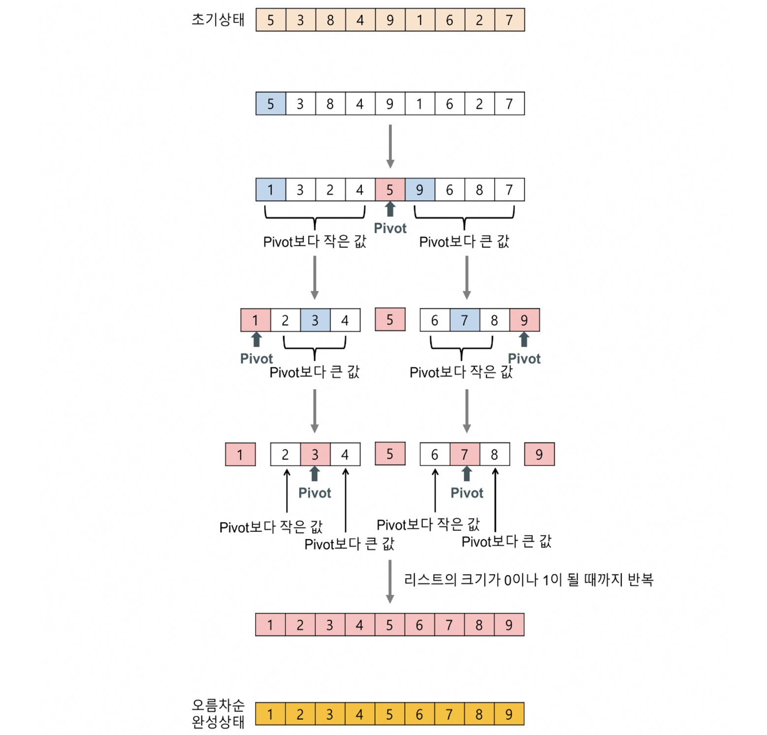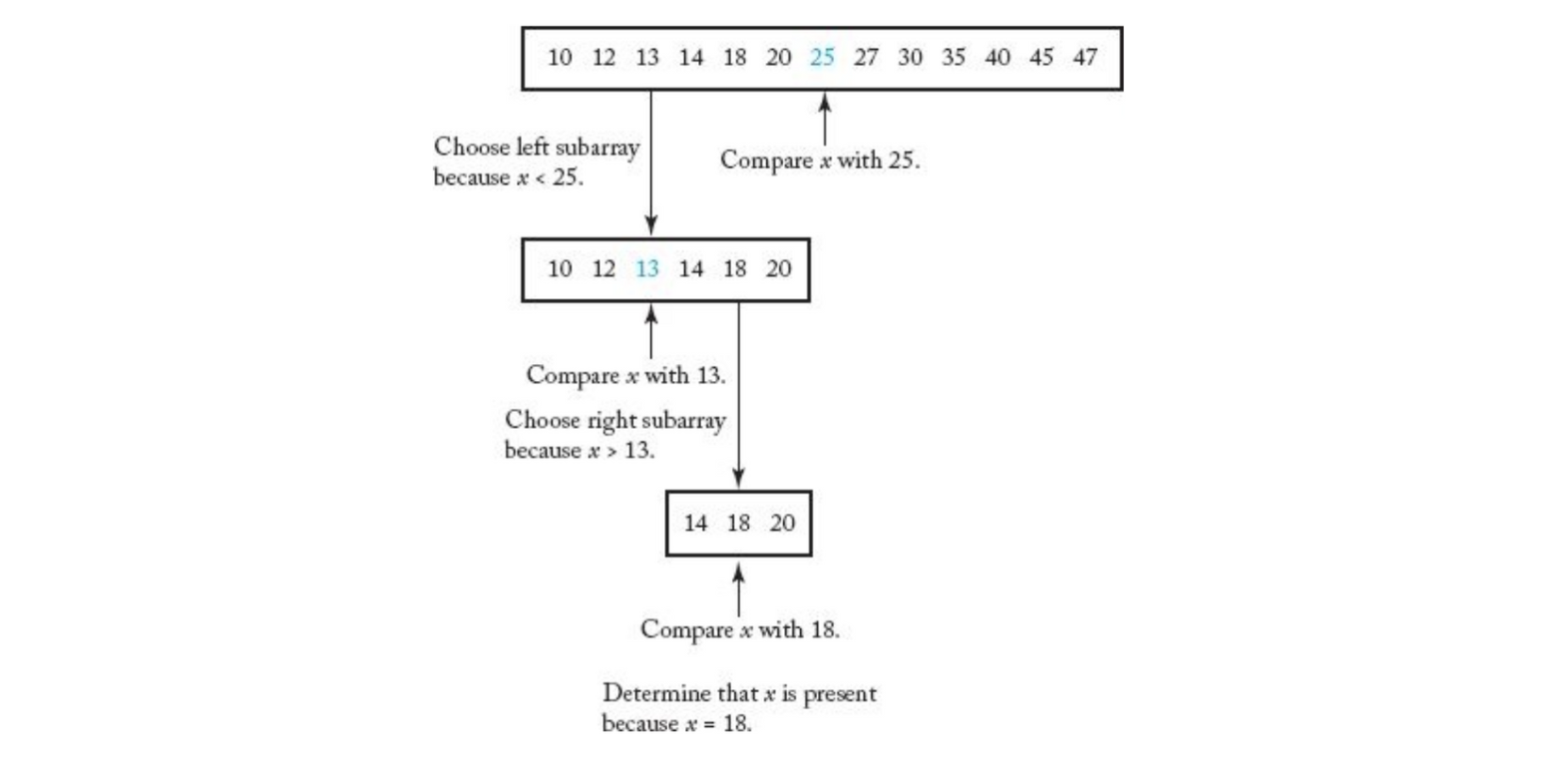 분할-정복1 이진탐색 - 반드시 이미 정렬된 배열에 대해 사용 - 배열에서 임의의 값을 선택, 찾으려는 값보다 임의의 값이 크면 임의의 값 왼쪽에서 재탐색(재귀). - 찾으려는 값보다 임의의 값이 작으면, 임의의 값 오른쪽에서 재탐색(재귀) - 시간복잡도 분석 - 처음에 입력된 개수 n이라 하면 첫 시행 후 n/2, 재시행 후 n/2 x 1/2 … - k번의 시행 후에 (1/2)^k x n 이고, 최악의 경우, 마지막에 1개가 남을때이므로 (1/2)^k x n = 1 - 양변에 2^k를 곱해주면, n = 2^k이다. 여기서, 양변에 2를 밑으로 하는 로그를 취하면 - k = log2(n), 시간복잡도는 O(logn)으로 나타낼 수 있다. (상수 무시) 합병 정렬(Merge sort) - 시간복잡도 - 배열의 길이 n이라 할때, 단계의 높이는 logn을 따르고, 병합시 비교는 배열의 길이만큼의 횟수가 필요하기 때문에 n이다. 따라서 시간복잡도 O(nlogn)